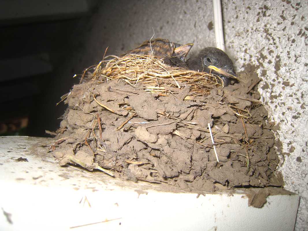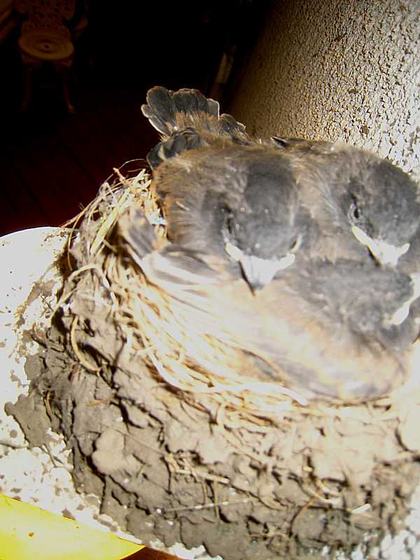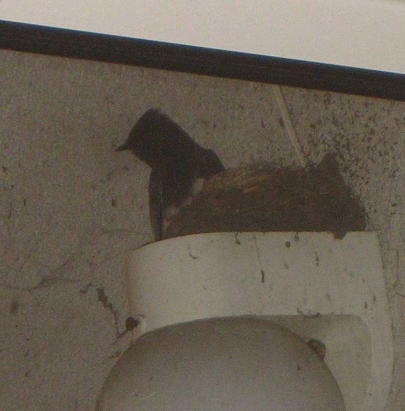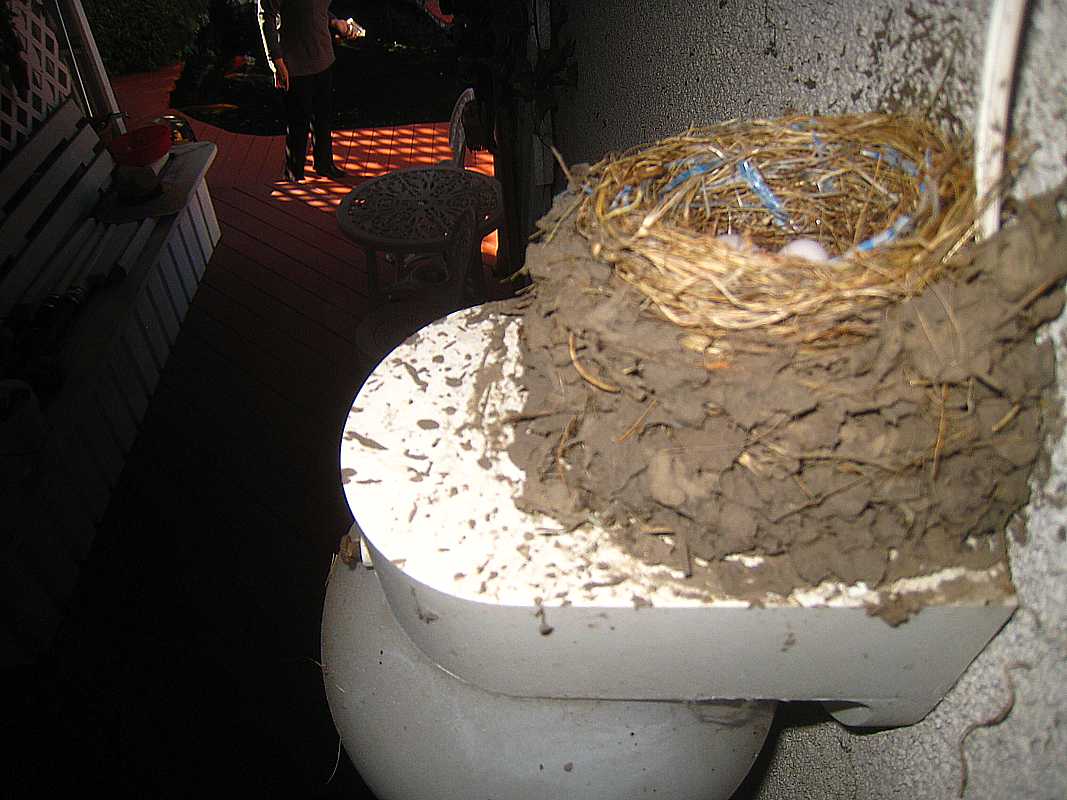 A pair of Black Phoebes decided that the lamp just outside our back door, under a little roof, was the place to build a nest and do what appears to be naturally for birds, raise a family ;-))