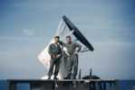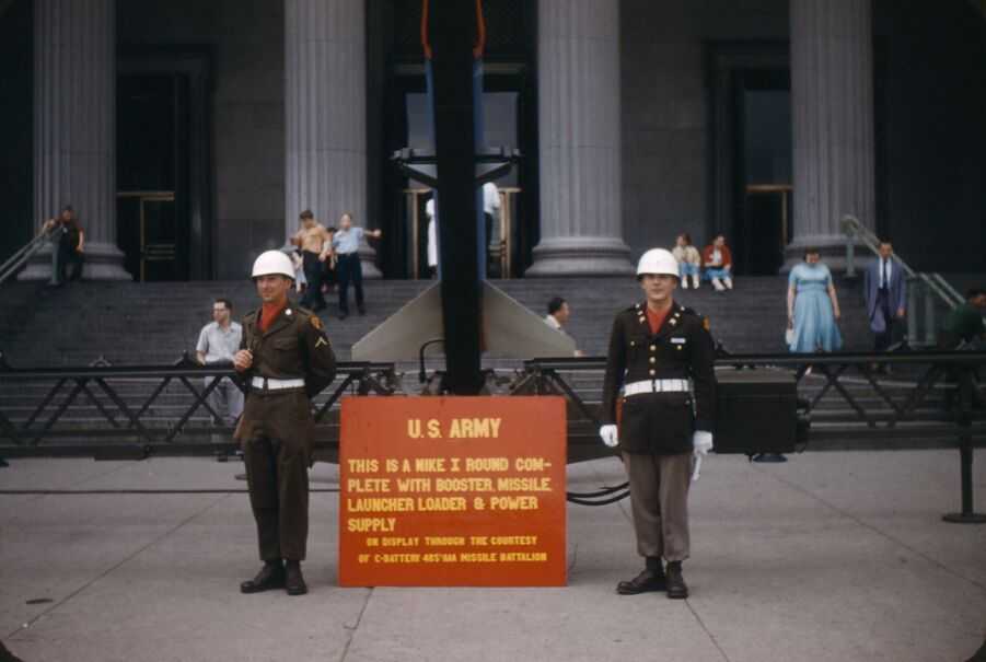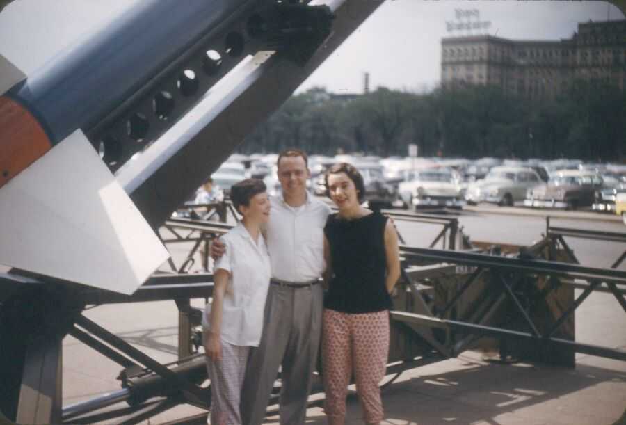 The display in front of the Museum of Science and Industry. Neil Childers from Elgin, Nebraska, and the young lieutenant. I think he was from Chicago.