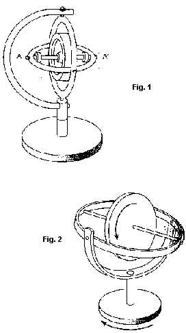 J.-B.-L. Foucault, a 19th.-century French scientist is responsible for giving the name gyroscope to a wheel, or rotor, mounted in gimbal rings, i.e. a set of rings that permit it to turn freely in any direction (Fig 1)