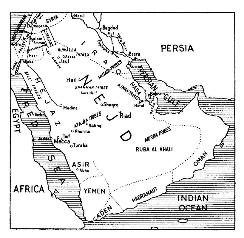 For the spelling of Arabic words I have kept one rule that, while keeping as close to the sound as possible, the written word shall not torment the English reading eye. Thus Saud may be written Saoud, Sa'ud, Sa'oud, Seoud, Se'aoud, Si'oud, Esseoud, and in a dozen more ways. I have kept it as Saud.