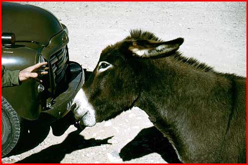 Nike was at the camp for over two years and delighted (almost) all who knew him. Stories abound of his antics, from attending church services to interrupting inspections. I suspect that when Nike laid his ears back, as in this photo, something was about to happen.