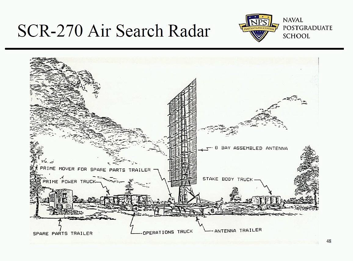 When I arrived at Okino-Erabu-Shima an island north of Okinawa (624th AC&W Sqdn) on August of 1952 our only radar was an SCR-270. This radar was very much like the Pearl Harbor radar back in 1941. The radar operated in the 100Mz frequency range .