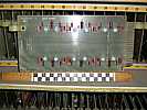 In any case, the metal gadgetry nearest you is the exit of the cards into the output hopper discussed (or cussed) below. That funny little gray finger thing is several layers of feeler gage stock, maybe 0.002 inch thick, whose purpose is to push the cards flying out of this machine into the output hopper in an orderly fashion.