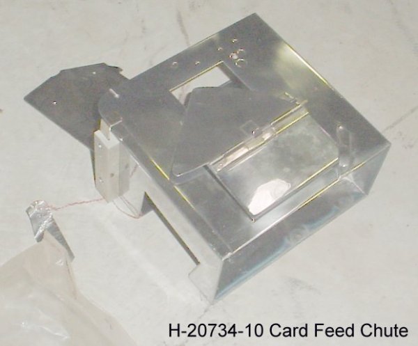 H-20734-10 Card Feed Chute.jpg This is the back side (the other side from the operator) of the infamous Elliott Card Reader Output Hopper. Dear Friends - there should be a special place in Hell for who ever designed this part of the nightmare card reader.