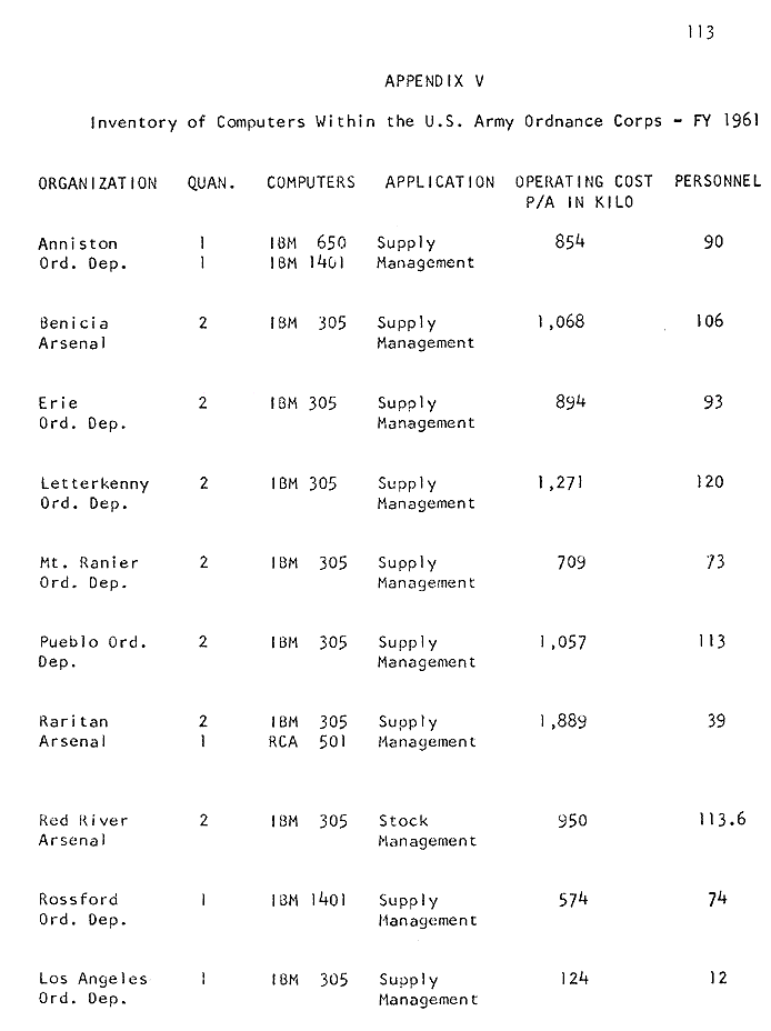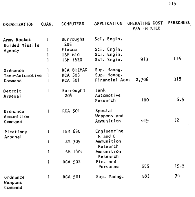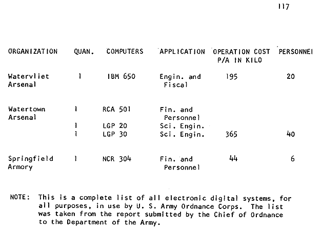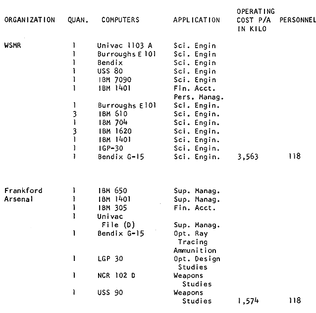 - Other computing systems in use by the Ordnance Corps, Science, and Industry.
