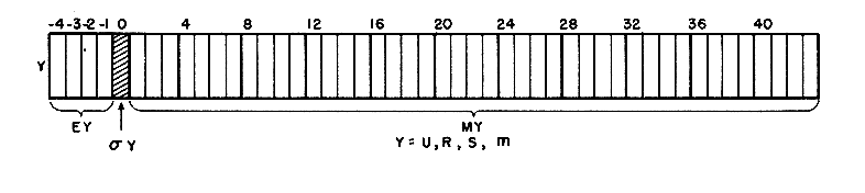 The letters U, R, and S stand, as before, for the Universal, Remainder, and Storage Registers, respectively. When necessary or helpful to distinguish stages 0 through 43 of a register from the entire register (-4 through 43), the notation U', R', or S' is used. MU, MR, and MS are used to denote stages 1 through 43 of U, R, and S (these are the stages which hold the magnitude of the fraction part of a number). The notation UR stands for the effective double length register in which stages I through 43 of R are taken to be an extension to the right of U. PF stands for the Pathfinder Register.