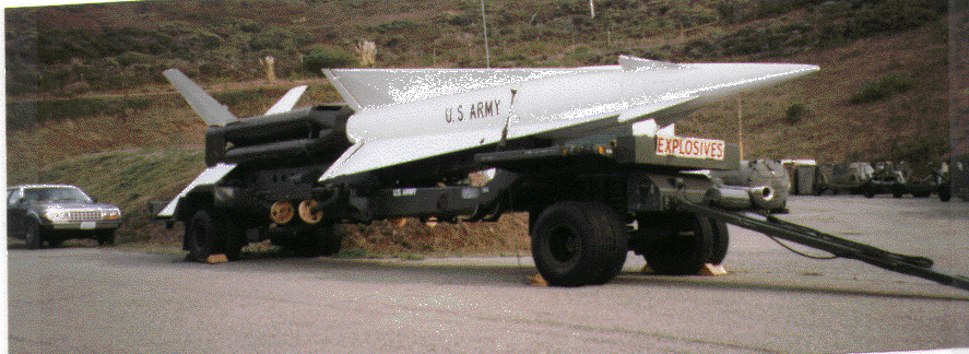 So, how did this affect the launcher? All launchers (even the ones at SF-88L) had the capability of being moved and then set up to fire at another place. To do this, the 7-ton launcher would be fitted out with an axle, driving lights, brakes, towing pintle, outriggers and a portable blast deflector, and it would be towed behind a 5-ton truck as a "trailer" and driven to its field firing position. It would be placed on the ground, outriggers extended, storage and handling rails attached, and the ready missile transporter would off-load a missile onto it. From there on, the firing procedures would be about the same as the semi-fixed position's procedures.